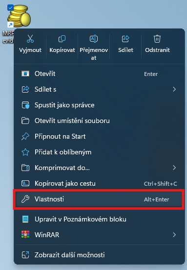 - Klikněte pravým tlačítkem myši na zástupce programu na pracovní ploše.